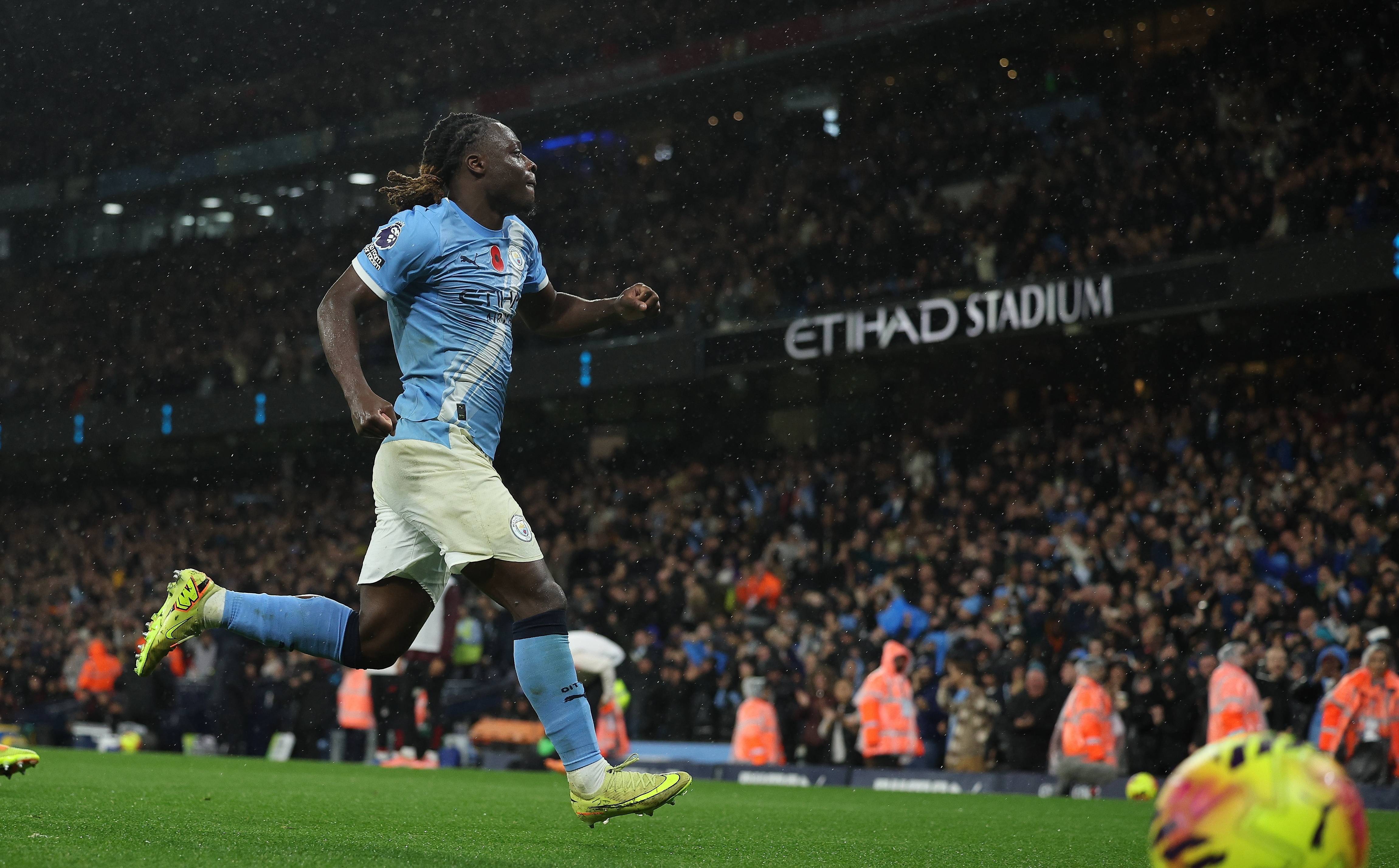 เมื่อวันที่ 9 พฤศจิกายน นิโก้ กอนซาเลซ (ซ้าย) นักเตะแมนเชสเตอร์ ซิตี้ ทำประตูที่สองให้กับทีมของเขา สำนักข่าวซินหัว/EPA