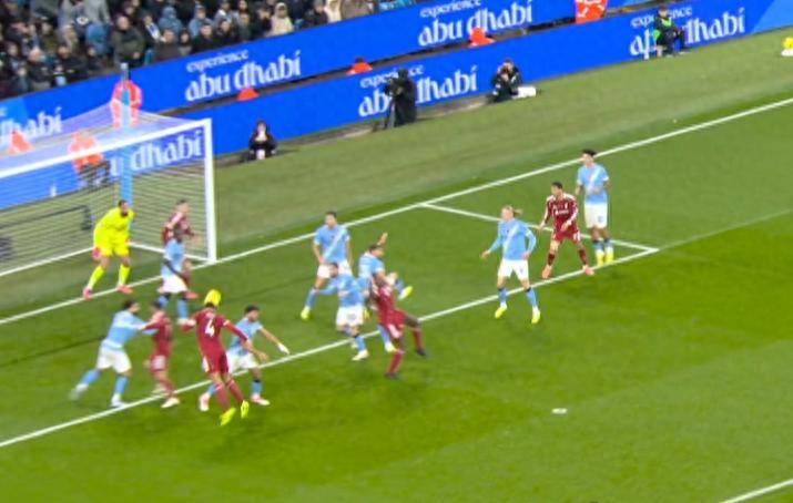 ในนาทีที่แปดของการแข่งขัน ลิเวอร์พูลทำผิดพลาดในการป้องกัน ทำให้ดูคูสามารถสกัดบอลได้ภายในเขตโทษและขับบอลไปข้างหน้า แต่ถูกมามาร์ดัชวิลีทำฟาวล์ล้มลง หลังจากที่ผู้ตัดสินได้ปรึกษากับผู้ช่วยผู้ตัดสินวิดีโอ ผู้ตัดสินได้มอบจุดโทษให้กับทีมเยือน ฮาลันด์ก้าวขึ้นมาเพื่อยิงจุดโทษ แต่ความพยายามของเขาถูกเซฟได้อย่างยอดเยี่ยมด้วยการพุ่งตัวเซฟของมามาร์ดัชวิลี ทำให้สกอร์ยังคงเท่าเดิม