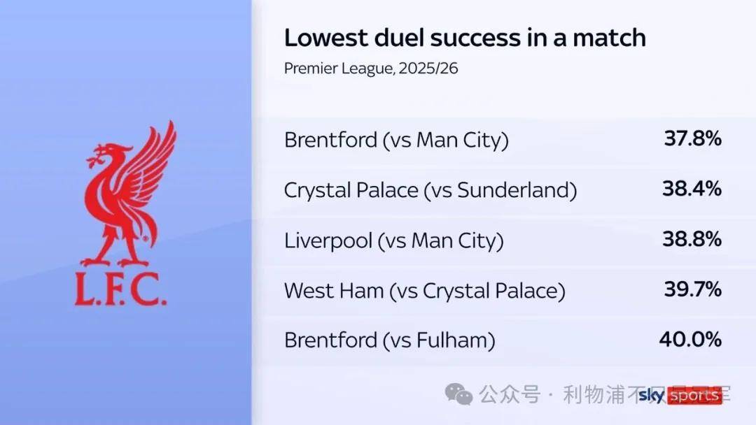 ประการแรก อัตราความสำเร็จในการเข้าปะทะของลิเวอร์พูลในนัดนี้อยู่ที่เพียง 38.8% ซึ่งจัดเป็นอันดับที่สามต่ำสุดในพรีเมียร์ลีกฤดูกาลนี้ โดยต่ำสุดที่บันทึกไว้คือ 37.8% ของเบรนท์ฟอร์ดที่พบกับแมนเชสเตอร์ซิตี้ อย่างไรก็ตาม ลิเวอร์พูลไม่สามารถได้เปรียบในการเผชิญหน้าทางกายภาพกับเบรนท์ฟอร์ด ซึ่งบ่งชี้อย่างชัดเจนถึงความจำเป็นเร่งด่วนในการปรับปรุงในด้านนี้