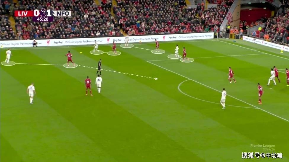 ทีมเยือนมีผู้เล่นสามคนอยู่ที่ปีกซ้าย ลิเวอร์พูลโต้กลับด้วยซาลาห์, เคอร์ติส โจนส์ และโซโบสไล