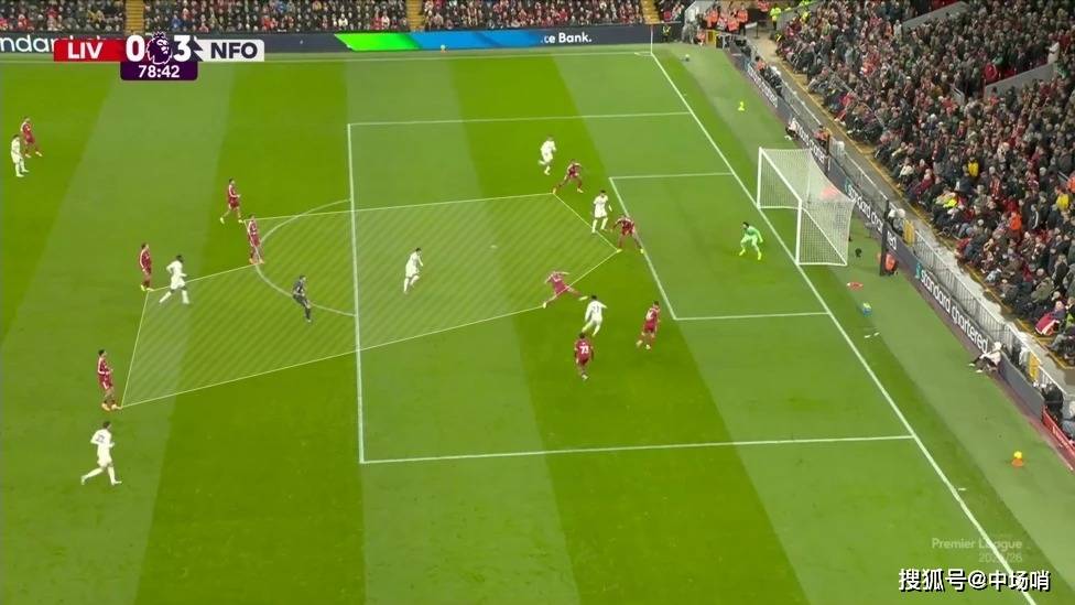 ประการที่สอง แนวรับของลิเวอร์พูลถอยลงไปลึกมากขึ้นอย่างมาก ทำให้ไม่มีผู้เล่นคอยให้การสนับสนุนอยู่หน้าพวกเขา ซึ่งสร้างพื้นที่ให้กับกองหน้าของฝ่ายตรงข้ามอยู่หน้าประตู