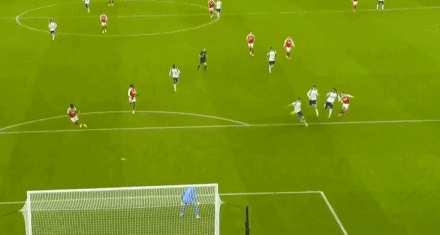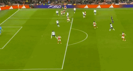 ในนาทีที่ 26 ซูบิเมนดี้จ่ายบอลได้อย่างยอดเยี่ยม ส่งให้ทิมเบอร์วิ่งทะลุขึ้นหน้าอย่างรวดเร็ว แวน เดอ เวน ใช้ร่างกายบังบอลไว้ในพื้นที่เกมรุก แต่วิคาริโอออกมาตัดบอลได้อย่างรวดเร็ว
