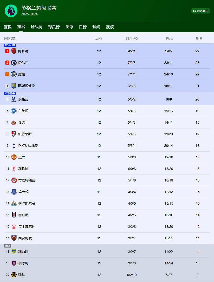 อาร์เซนอลนำเป็นจ่าฝูงในตารางพรีเมียร์ลีกด้วยชัยชนะ 13 นัดและเสมอ 2 นัดจาก 15 นัด