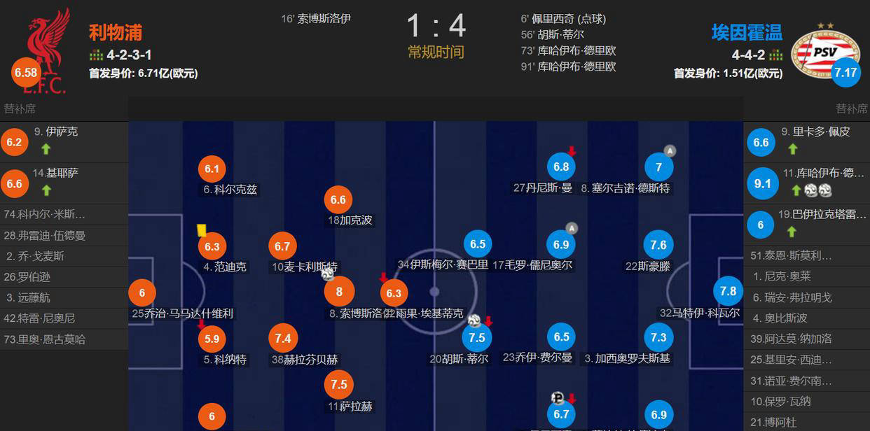 เมื่อครึ่งหลังเริ่มต้นขึ้น ลิเวอร์พูลเร่งเกมรุกอย่างสิ้นหวัง แต่การส่งไอแซคลงสนามแทนเอกิติที่บาดเจ็บก็ไม่สามารถจุดประกายเกมตอบโต้ได้อย่างมีประสิทธิภาพ ขณะที่พีเอสวี ไอน์โฮเฟนใช้โอกาสนี้ต่อยอดความได้เปรียบ: ทีลทำประตูเบิกร่องด้วยการจบสกอร์อย่างเฉียบขาดหลังจากรับบอลทะลุช่อง ก่อนที่เดอ รูอิชจะบวกเพิ่มอีกสองประตู ขยายสกอร์นำเป็น 3-1ในช่วงทดเวลาบาดเจ็บ เดสต์ช่วยเดอลิกต์ทำประตูที่สองของเขา ทำให้สกอร์จบที่ 1-4 ความพ่ายแพ้อย่างน่าอับอายในบ้านครั้งนี้ทำให้ลิเวอร์พูลต้องอับอายขายหน้าอย่างสิ้นเชิง