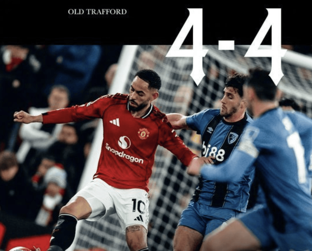 ในช่วงเช้าตรู่ของวันที่ 16 ธันวาคม ตามเวลาปักกิ่ง แมนเชสเตอร์ ยูไนเต็ด เปิดบ้านต้อนรับการมาเยือนของบอร์นมัธ ในรอบที่ 16 ของพรีเมียร์ลีก ทั้งสองทีมเปิดฉากเกมรุกกันอย่างดุเดือด ครึ่งแรกจบลงด้วยสกอร์ 2-1 แมนเชสเตอร์ ยูไนเต็ด นำอยู่ ในครึ่งหลัง ทั้งสองทีมทำประตูรวมกันถึง 5 ประตู สุดท้าย แมนเชสเตอร์ ยูไนเต็ด เสมอกับบอร์นมัธ 4-4 แมนเชสเตอร์ ยูไนเต็ด ไม่สามารถเอาชนะบอร์นมัธได้เลยใน 5 นัดล่าสุดในพรีเมียร์ลีก