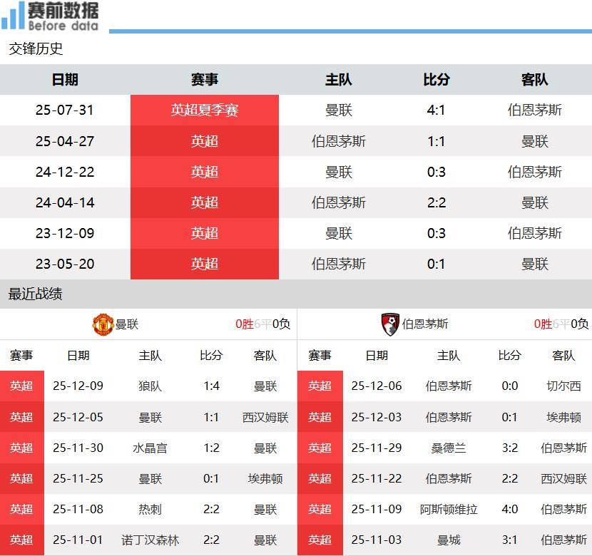 เวลา 21:30 น. ตามเวลาปักกิ่ง วันที่ 16 ธันวาคม การแข่งขันนัดสุดท้ายของรอบที่ 16 ของพรีเมียร์ลีก จะเป็นการพบกันระหว่างแมนเชสเตอร์ ยูไนเต็ด กับบอร์นมัธ ที่สนามเหย้าของแมนเชสเตอร์ ยูไนเต็ด