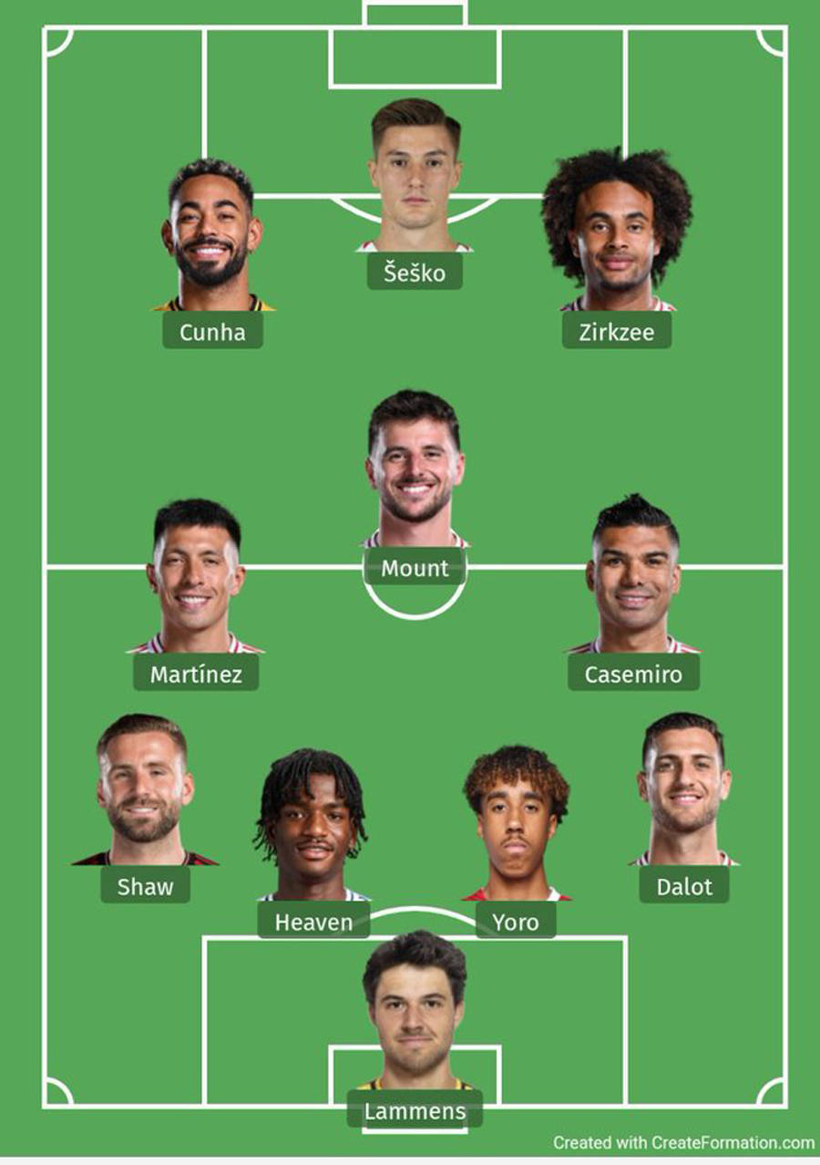 สำหรับสองนัดที่เหลือในฤดูกาลนี้ อาโมอิมไม่มีทางเลือกอื่นนอกจากต้องส่งอูการ์เต้หรือลิซานโดร มาร์ติเนซลงเล่นในตำแหน่งของบรูโน่ แฟร์นันเดส เนื่องจากโกเบ เมโนจะพักรักษาตัวเป็นเวลาหลายสัปดาห์จากอาการบาดเจ็บที่น่องตัวเลือกอื่น ๆ สำหรับอโมลิง ได้แก่ แจ็ค เฟลตเชอร์ วัย 18 ปี หรือเมสัน เมาท์ ผู้เซ็นสัญญาด้วยค่าตัว 60 ล้านปอนด์ อย่างไรก็ตาม ทั้งสองผู้เล่นเช่นเดียวกับบรูโน่ แฟร์นันด์ส เป็นผู้เล่นตำแหน่งกองกลางตัวกลางเป็นหลัก