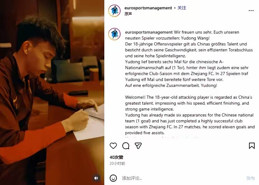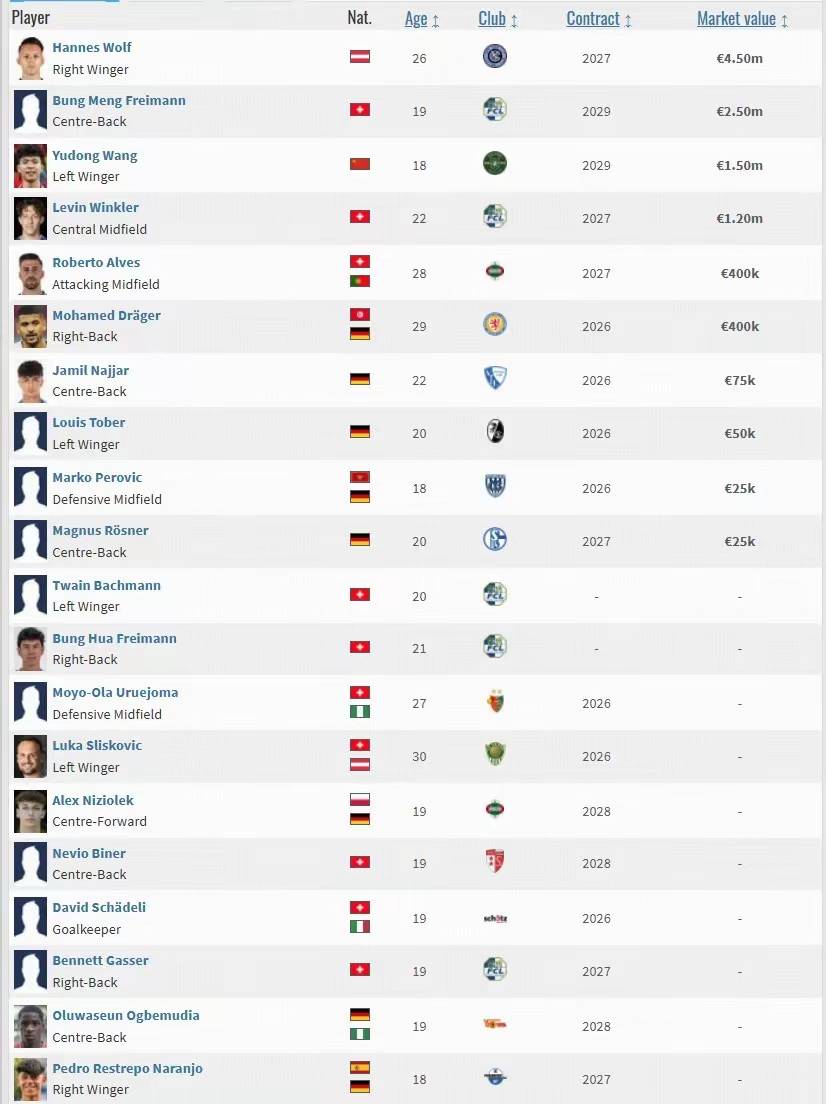 เมื่อวันที่ 14 พฤศจิกายน หวัง หยูตง วัย 18 ปี ได้เซ็นสัญญากับเอเจนซี่กีฬาของยุโรป ESM Sportmanagement บริษัทนี้ดำเนินการหลักในลีกของสวิตเซอร์แลนด์ ออสเตรีย และเยอรมนี ในภูมิภาคที่ใช้ภาษาเยอรมันเป็นหลัก โดยหวังได้รับการจัดอันดับให้เป็นผู้เล่นที่มีมูลค่าสูงเป็นอันดับสามของเอเจนซี่นี้อันดับหนึ่งคือผู้เล่นชาวออสเตรีย วูล์ฟ จากสโมสรนิวยอร์ก ซิตี้ เอฟซี ในเมเจอร์ลีกซอกเกอร์ มีมูลค่า 4.5 ล้านยูโร อันดับสองคือ บองโก เฟรย์มันน์ วัย 19 ปี จากสโมสรเอฟซี ลูเซิร์น ในสวิส ซูเปอร์ลีก มีมูลค่า 2.5 ล้านยูโร
