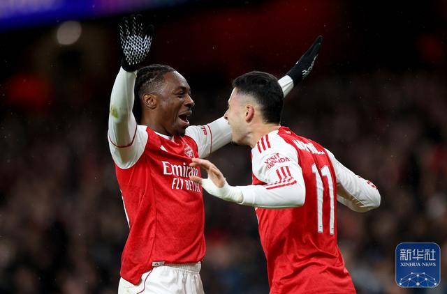 มาร์ตินเนลลีของอาร์เซนอล (ขวา) ฉลองกับเพื่อนร่วมทีม เอเซ หลังทำประตูได้