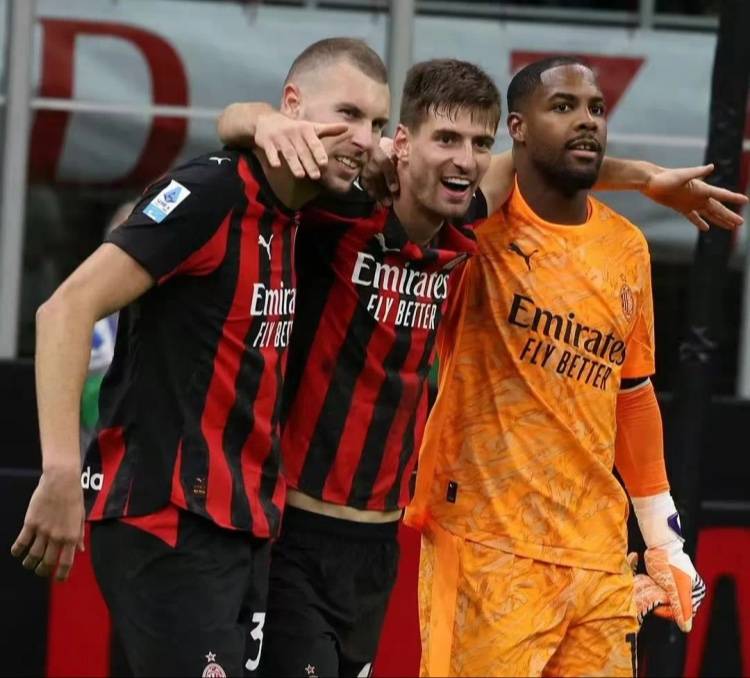 รายชื่อผู้เล่นตัวจริงของมิลานคือระบบ 3-5-2: