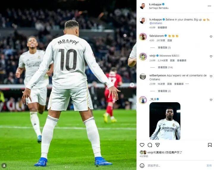 หลังจบการแข่งขัน เอ็มบัปเป้ได้แชร์ภาพถ่ายสองภาพผ่านโซเชียลมีเดีย: ภาพหนึ่งเป็นภาพที่เขาเลียนแบบท่าดีใจ "SIUUU" อันเป็นเอกลักษณ์ของคริสเตียโน โรนัลโด และอีกภาพเป็นภาพวัยเด็กของเขาที่ถ่ายคู่กับโรนัลโด พร้อมแคปชั่นว่า "เชื่อในความฝันของคุณ บทสดุดีแด่ราชา 👑🐐" และแท็กถึงโรนัลโด แสดงให้เห็นถึงความชื่นชมอย่างลึกซึ้งที่เขามีต่อไอดอลของเขา