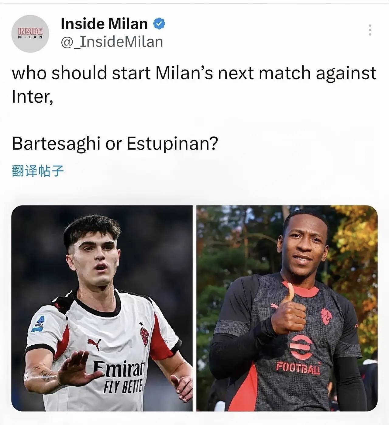 กระแสสื่อเซเรียอา: สำหรับศึกดาร์บี้แห่งมิลานที่กำลังจะมาถึง อัลเลกรีจะเลือกบาตชูอายีหรือเอสตูปินานเป็นตัวจริง? _การแข่งขัน_ _ตำแหน่ง_ _ความสามารถ_