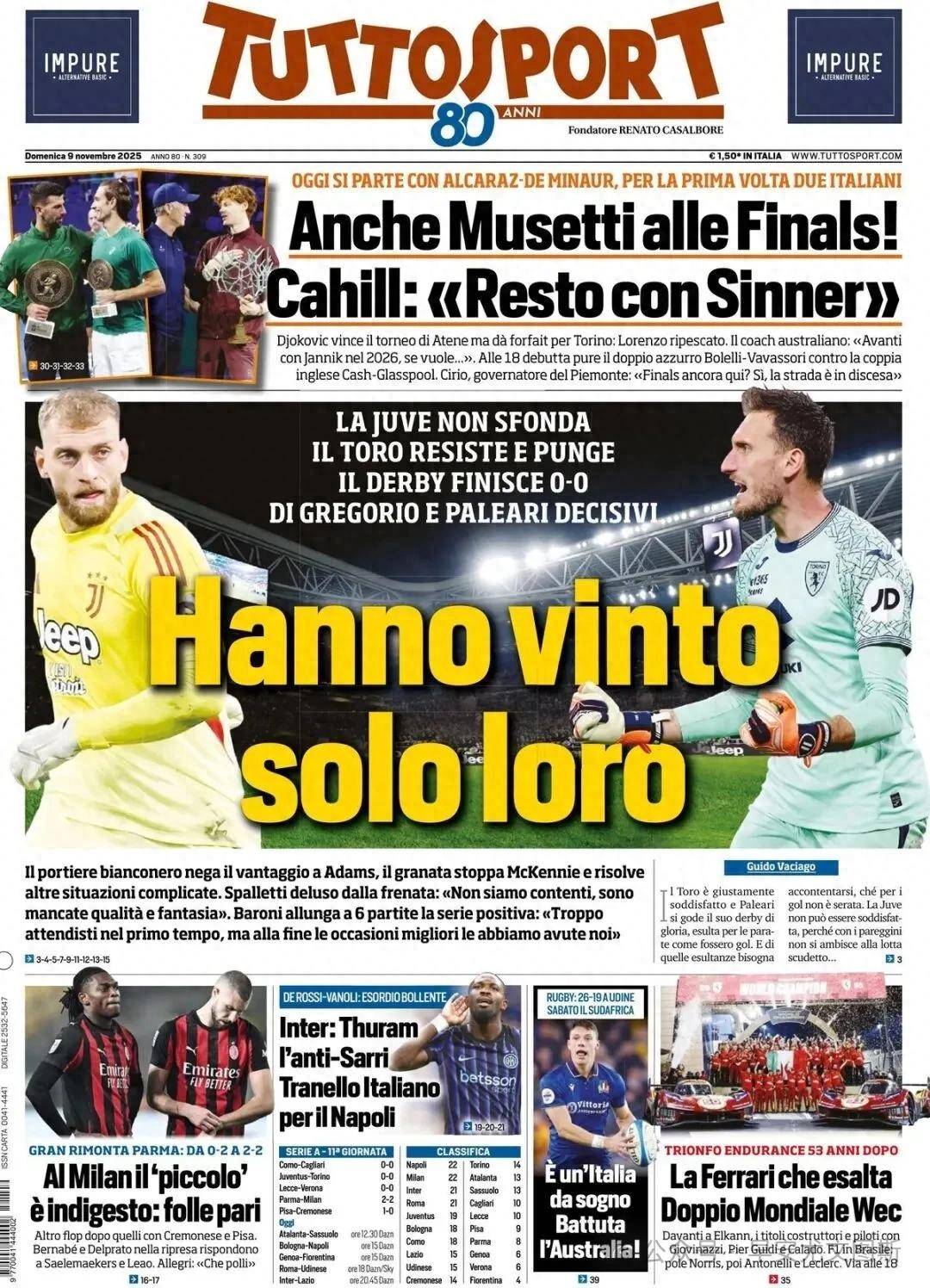 ผู้จัดการทีมยูเวนตุส สปัลเล็ตติ ได้พาทีมไปสู่การไม่แพ้ติดต่อกันสามนัดติดต่อกัน อย่างไรก็ตาม การเสมอกับโตริโน่ได้เปิดเผยปัญหาสำคัญสามประการภายในทีม ประการแรก แม้จะครองบอลได้เหนือกว่า แต่จังหวะการโจมตีของยูเวนตุสยังคงช้าอย่างเห็นได้ชัด แม้ว่าพวกเขาจะควบคุมจังหวะของเกมได้ (ครองบอล 71%) แต่ความเร็วและความเฉียบคมในการส่งบอลยังคงไม่เพียงพอสปัลเล็ตติเน้นย้ำถึงความจำเป็นในการส่งบอลทะลุช่องที่เฉียบคมมากขึ้น เพื่อหลีกเลี่ยงการถูกสกัดกลางสนามและเจาะแนวรับของคู่แข่ง ปัญหานี้เกิดขึ้นอย่างต่อเนื่องและอาจเกิดจากข้อจำกัดทางเทคนิคของขุมกำลังปัจจุบันของยูเวนตุส ซึ่งเป็นปัญหาที่พบเห็นซ้ำในฤดูกาลที่ผ่านมา ทางออกเดียวที่ดูเหมือนจะเป็นไปได้คือการแก้ไขข้อบกพร่องนี้ด้วยการเสริมผู้เล่นใหม่ที่มีคุณสมบัติเหมาะสมในตลาดซื้อขายนักเตะ