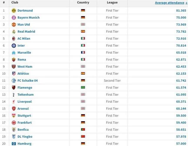 ตัวเลขผู้เข้าชมการแข่งขันในบ้านล่าสุดของต้าเหลียน อิงป๋อ: สามารถจัดอันดับอยู่ในหกอันดับแรกของพรีเมียร์ลีก, อันดับหนึ่งของเอเชีย!_อินเตอร์ มิลาน_แอตเลติโก มาดริด_เอเอส โรม่า