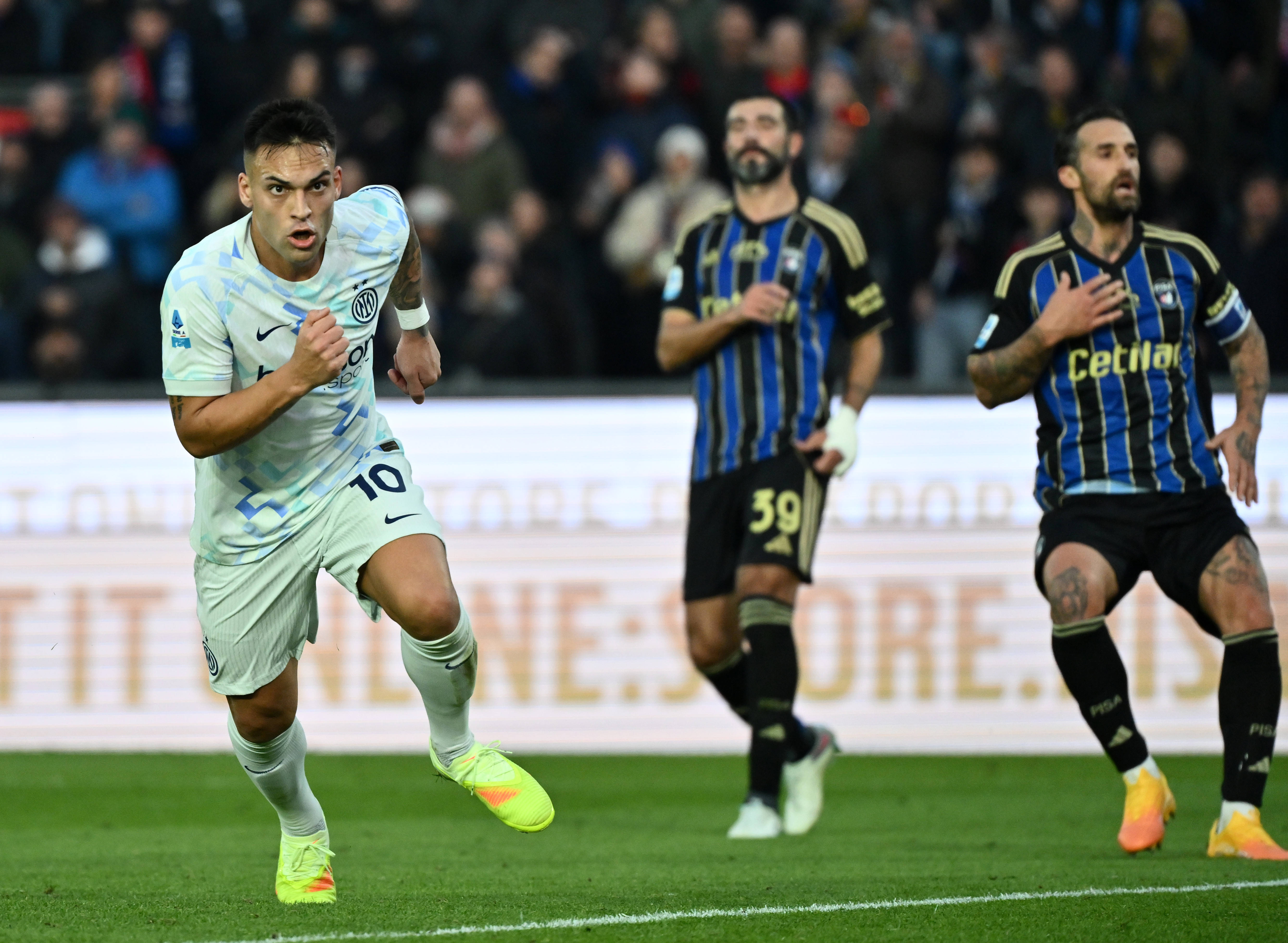 ในการแข่งขันเยือนของอินเตอร์ มิลาน พบกับปิซา เนรัซซูร์รีครองเกมได้เหนือกว่าตั้งแต่เริ่ม แต่กลับไม่สามารถทำประตูได้ ความกดดันยังคงดำเนินต่อไปหลังจากพักครึ่ง โดยเปียว เอสโปซิโต เปิดบอลจากฝั่งซ้ายในนาทีที่ 69 ให้เลาตาโร่ยิงจ่อๆ เข้าประตูไปในนาทีที่ 83 ลอทาโร่ได้รับบอลจากบาเรลล่าในเขตโทษ ก่อนจะสไลด์บอลเข้าประตูจากระยะเผาขน ปิดสกอร์ชัยชนะที่ 2-0