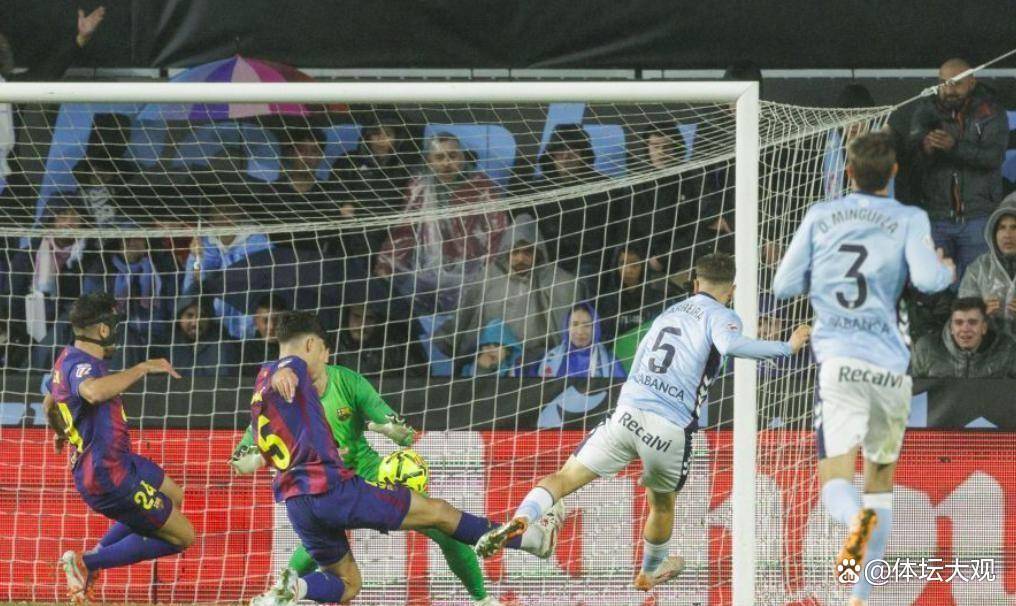 แต่แนวรับของบาร์เซโลนาแสดงให้เห็นถึงความเปราะบางอย่างรวดเร็ว—เพียงสามนาทีต่อมา เซลต้า บีโก้ก็เปิดเกมโต้กลับอย่างเรียบง่ายและรวดเร็ว บัลเด่ถ่วงเกมไว้เพื่อล่อให้กองหลังล้ำหน้า ก่อนจะปล่อยให้คาร์เรหลุดเข้าไปยิงประตูตีเสมอได้สำเร็จ