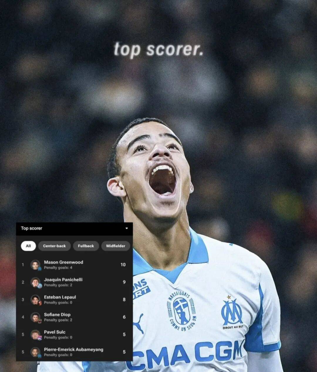 ตามสถิติ กรีนวูดได้ลงเล่นในลีกเอิง 1 จำนวน 12 นัดในฤดูกาลนี้ โดยทำได้ 10 ประตู ซึ่งทำให้เขาอยู่ในอันดับต้น ๆ ของตารางคะแนนลีกในขณะนี้