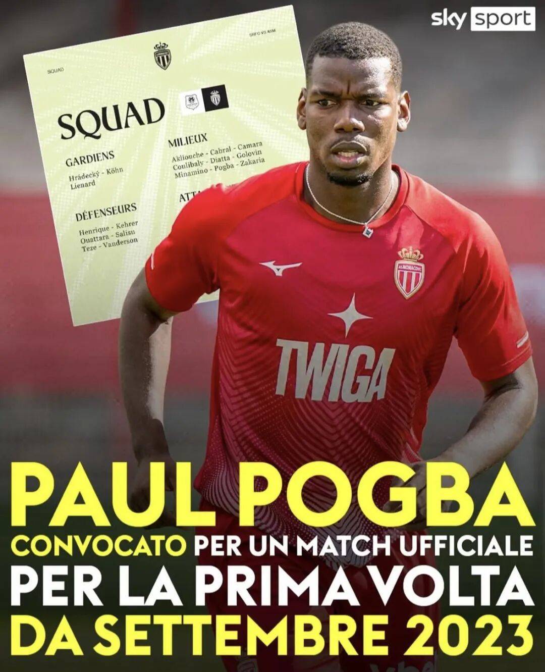 สโมสรอาแอส โมนาโก ได้ยืนยันอย่างเป็นทางการแล้วว่า พอล ป็อกบา จะถูกบรรจุชื่ออยู่ในทีมชุด 22 คน สำหรับการแข่งขันนัดที่จะพบกับ เรนส์ โดยทั้งทีมจะเดินทางไปยังบริตตานีในวันศุกร์นี้เพื่อเตรียมความพร้อม แม้ว่ากองกลางรายนี้อาจไม่ได้ลงสนามในทางทฤษฎี แต่สถานะการเป็นนักเตะที่ลงทะเบียนกับสโมสรทำให้แทบจะเป็นไปไม่ได้ที่เขาจะไม่ได้มีส่วนร่วม ทีมจะประกาศรายชื่อผู้เล่นในวันแข่งขัน ซึ่งชื่อของเขาจะปรากฏอยู่ในรายชื่อนี้ ทำให้มีความเป็นไปได้สูงที่เขาจะได้ลงสนามแข่งขันอย่างเป็นทางการเป็นครั้งแรกในรอบสองปีสองเดือน และจะเป็นการประเดิมสนามในลีกเอิง (Ligue 1) อีกด้วย