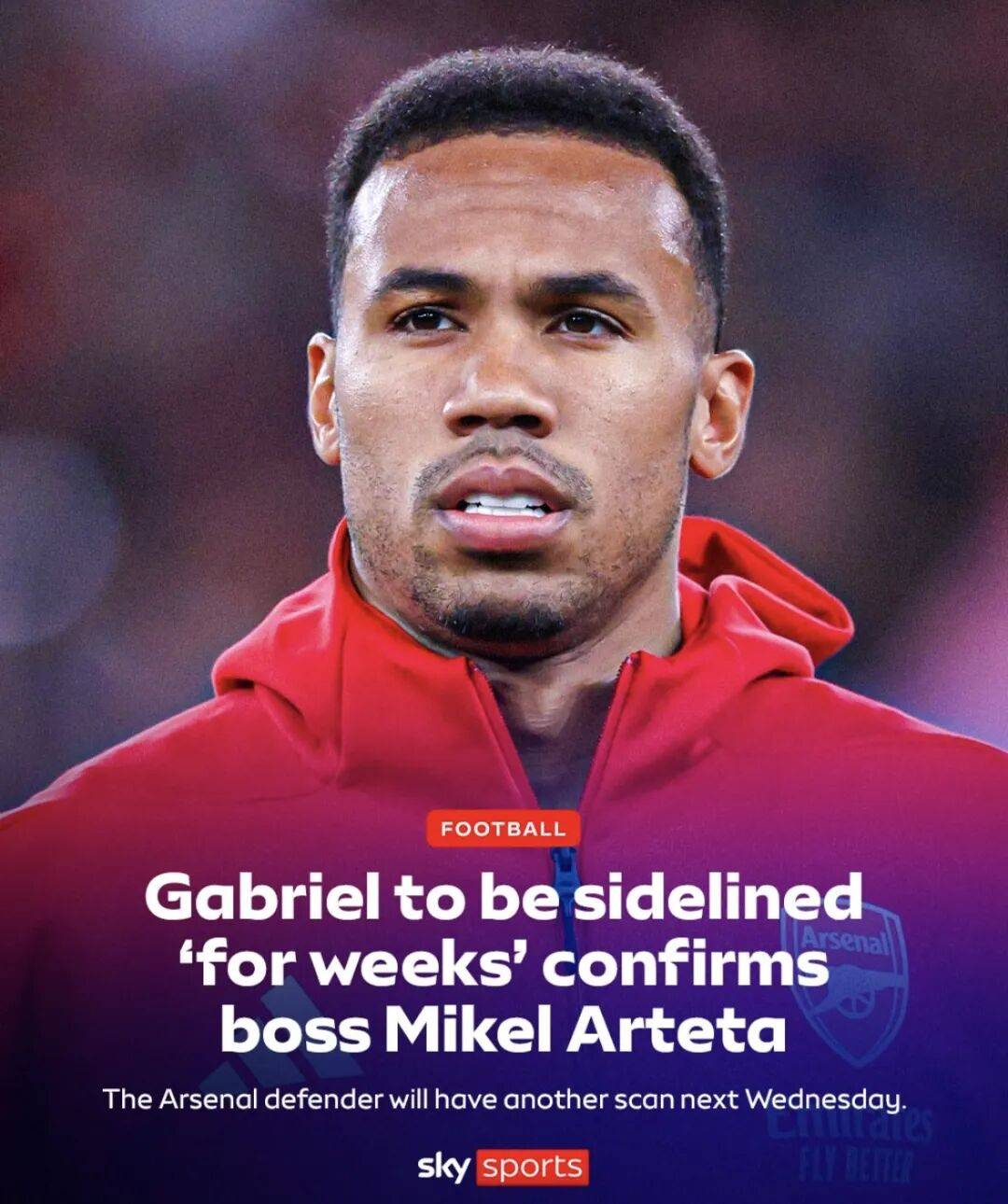 นอกจากนี้ โรมาโนยังระบุว่า อาร์เซนอลกำลังประสบปัญหาอาการบาดเจ็บ โดยกาเบรียล กองหลังตัวกลางจะต้องพักรักษาตัวเป็นเวลาหลายสัปดาห์ และจะพลาดการแข่งขันในเดือนหน้า สโมสรจะจัดให้เขาเข้ารับการสแกนในวันพุธหน้าเพื่อประเมินว่าเขาจะต้องพักการแข่งขันจนถึงเดือนมกราคมหรือไม่