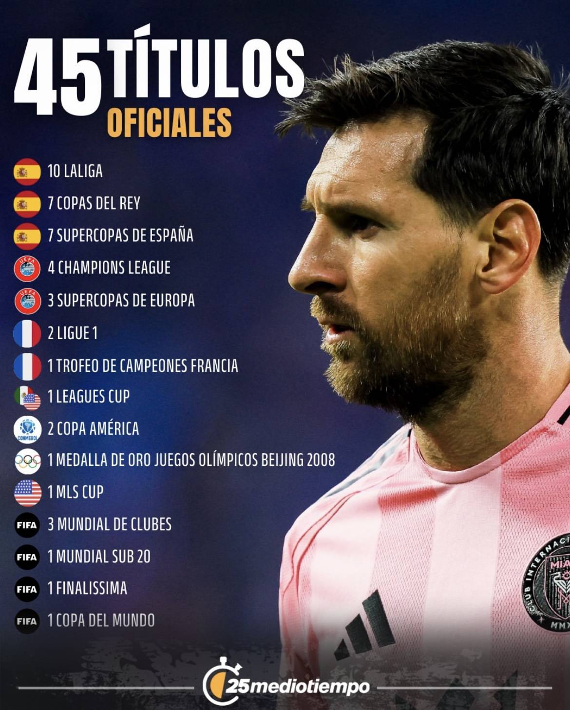 ลิโอเนล เมสซี ได้สะสมถ้วยรางวัลอย่างเป็นทางการถึง 45 รางวัล ตั้งแต่บาร์เซโลนาถึงไมอามี ประวัติการเล่นของเขาครอบคลุมเกือบทุกแชมป์ใหญ่ที่มีให้คว้า (สถิติ ณ วันที่ 13 ธันวาคม 2567)การรวบรวมตำแหน่งแชมป์เช่นนี้เปรียบเสมือนกำแพงที่ไม่อาจข้ามผ่านได้ในทุกยุคทุกสมัย ขวางทางเดินของผู้ที่ต้องการก้าวตาม อย่างไรก็ตาม ในหมู่คนรุ่นปัจจุบัน ชื่ออย่าง เอ็มบัปเป้, เบลลิงแฮม, ยามาล และมูเซียลา ต่างก็ได้ก้าวขึ้นมาเป็นศูนย์กลางของสโมสรชั้นนำและทีมยักษ์ใหญ่ สะสมถ้วยรางวัลด้วยอัตราที่น่าทึ่งไม่แพ้กัน ไม่ว่าใครจะสามารถเข้าใกล้หรือทำลาย "มาตรฐานเมสซี" นี้ได้หรือไม่ กำลังกลายเป็นคำถามระยะยาวที่ยืนยงที่สุดในวงการฟุตบอล
