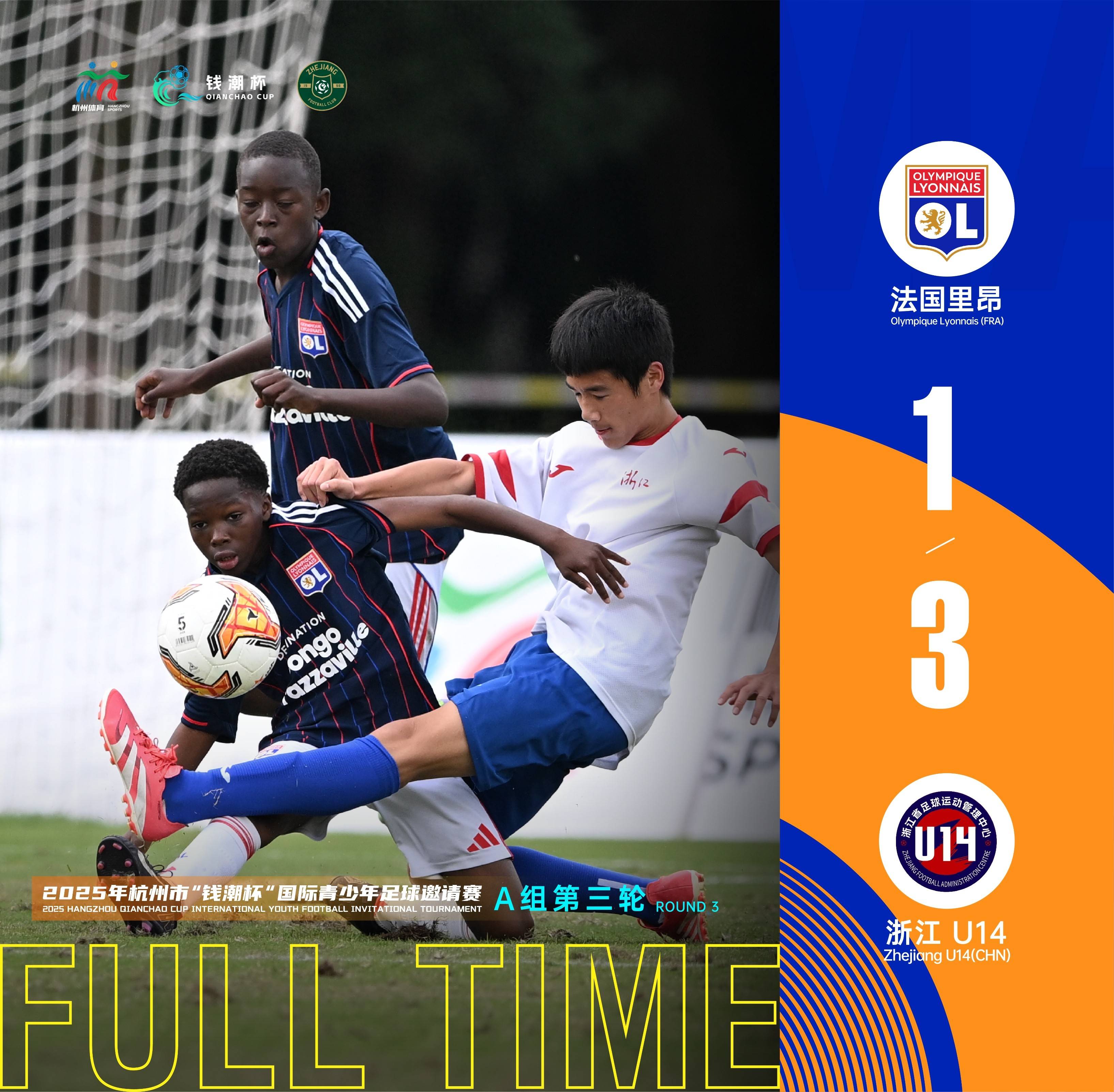 ในเช้าวันที่ 23 ตุลาคม 2025 ตามเวลาปักกิ่ง การแข่งขันฟุตบอลเยาวชนนานาชาติถ้วยเฉียนเฉา คัพ ได้มีการแข่งขันที่น่าจับตามองในกลุ่ม A รอบที่สาม: ทีมเจ้อเจียง U14 ที่เพิ่งกลับมาชนะจากการพลิกเกมกับทีมอุราวะ เรด ไดมอนด์ส จากญี่ปุ่น ได้เผชิญหน้ากับทีมลียง U14 จากลีกเอิง ฝรั่งเศส ทีมจากฝรั่งเศสได้พ่ายแพ้สองนัดติดต่อกันในนัดก่อนหน้าและอยู่ในฟอร์มที่ไม่ดีหลังจากการแข่งขันที่ดุเดือด Zhejiang U14 สามารถคว้าชัยชนะอย่างถล่มทลาย 3-1 เหนือ Lyon U14 ทำให้พวกเขาคว้าชัยชนะติดต่อกันสองครั้งได้อย่างน่าเกรงขาม