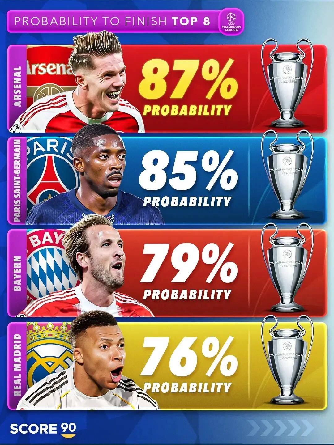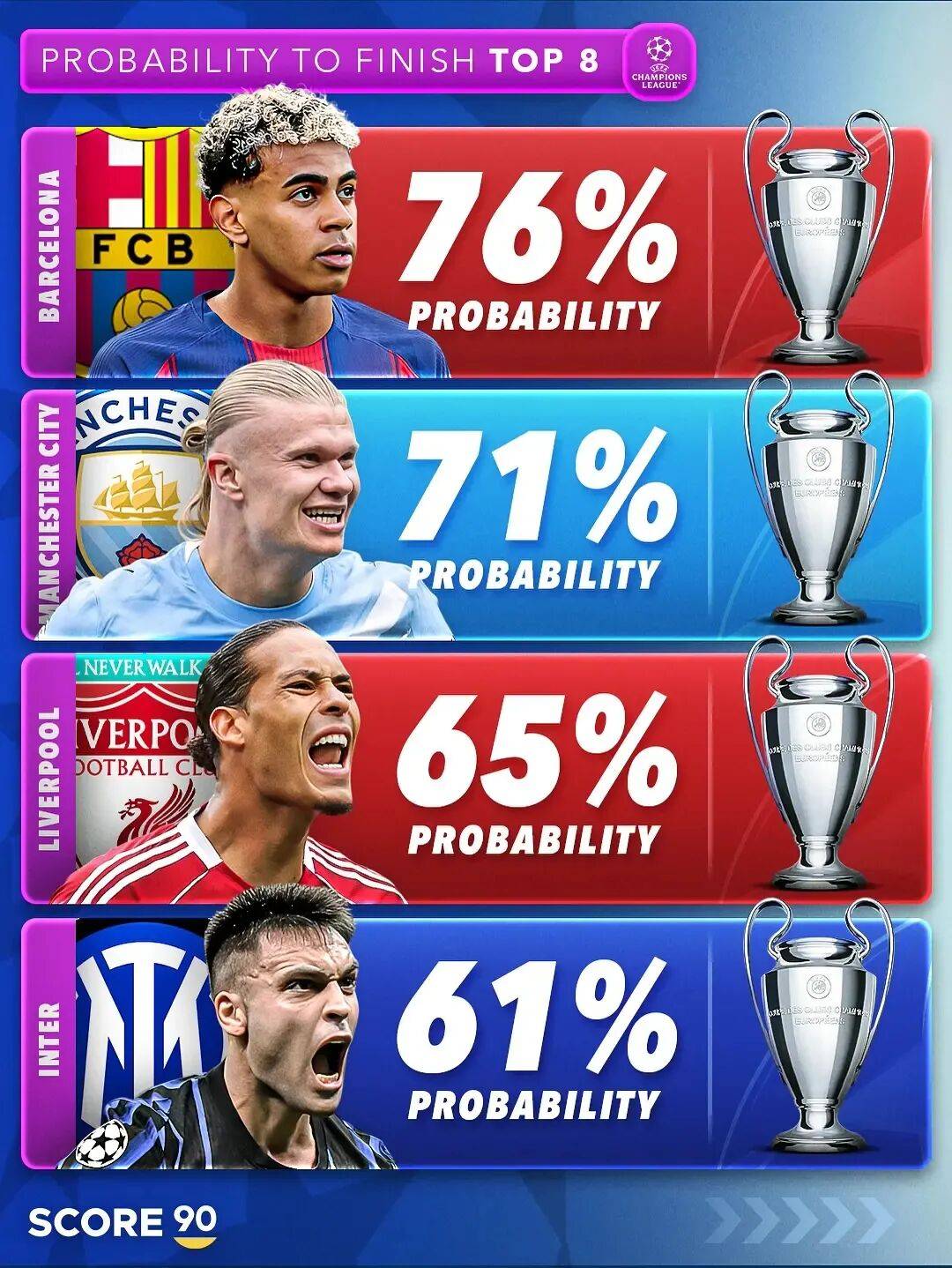 คุณสังเกตเห็นหรือไม่? หลังจากผ่านไปสามรอบของการแข่งขันยูฟ่าแชมเปียนส์ลีก ทีมที่อยู่ในอันดับต้น ๆ ห้าทีมบนตารางคะแนนล้วนมาจากลีกใหญ่ห้าลีกอย่างถูกต้องตามคาด เราพูดถึงลีกใหญ่ห้าลีกอยู่บ่อยครั้ง แต่ตอนนี้ความแข็งแกร่งรวมของพวกเขาก็ได้ถูกเปิดเผยออกมาอย่างชัดเจนแล้ว