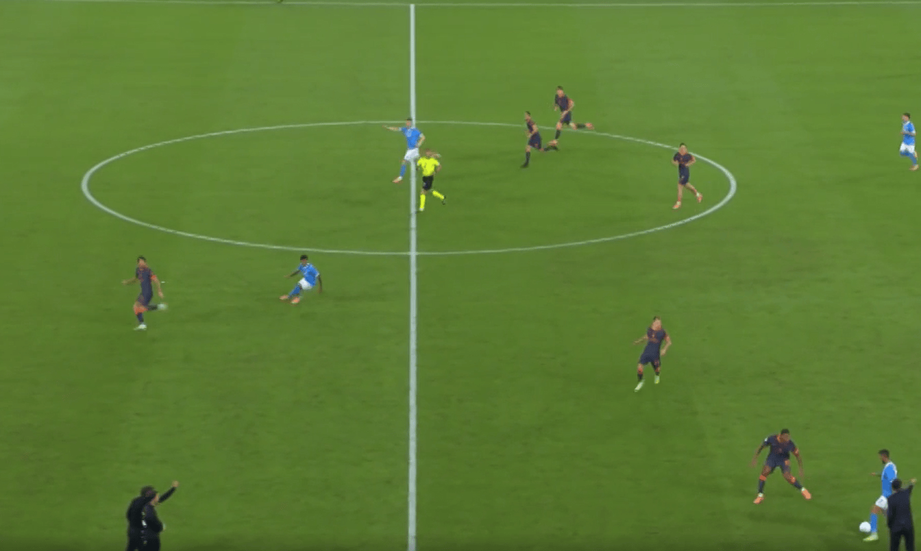 นาโปลีรอดพ้นกับดักล้ำหน้าได้เพราะการถ่วงเวลาของเขา แทนที่จะใช้ช่องว่างด้านหลังของบาสโตนีและอักนจิเพื่อสร้างโอกาสทองในการทำประตู