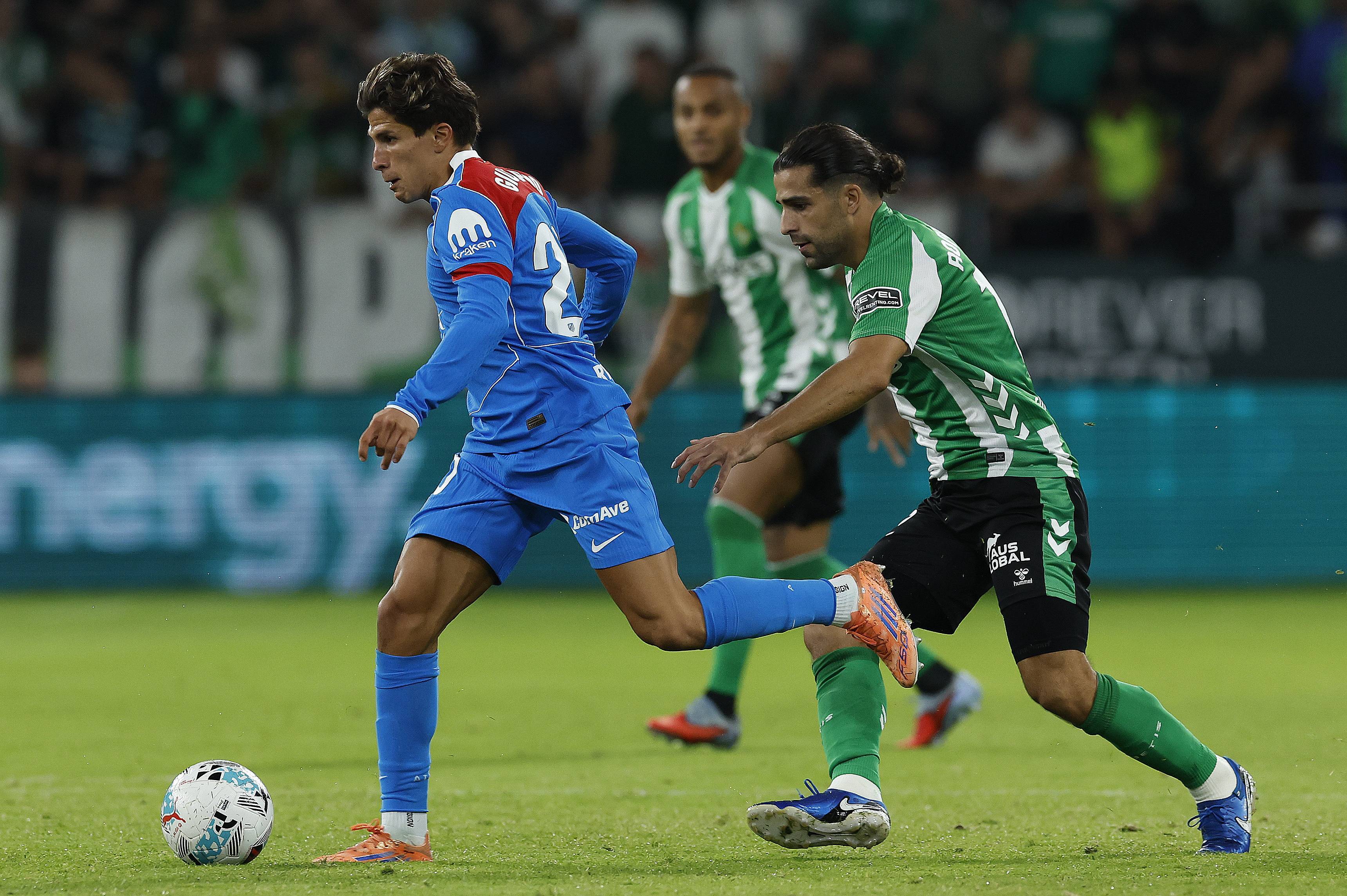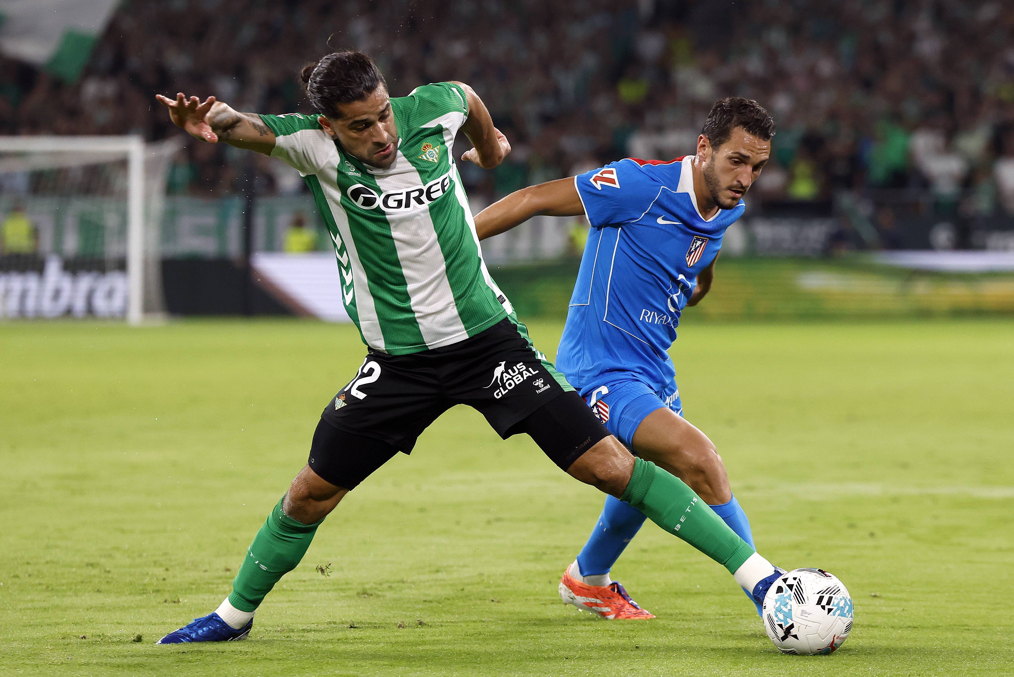 เมื่อวันที่ 27 ตุลาคม โกเก้ (ขวา) ของแอตเลติโก มาดริด เข้าปะทะกับ โรดริเกซ ของเรอัล เบติส เพื่อแย่งบอล ชินหัว/EPA