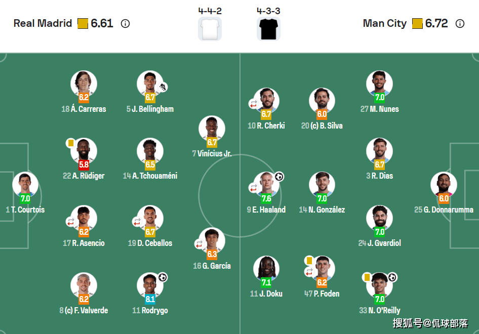 จากข้อมูลข้างต้น จะเห็นได้ว่าผู้เล่นที่ทำคะแนนสูงสุดในสนามไม่ใช่ เออร์ลิง ฮาแลนด์ ของแมนเชสเตอร์ ซิตี้ แต่เป็น โรดรีโก้ ของเรอัล มาดริด ซึ่งได้รับคะแนน 8.1