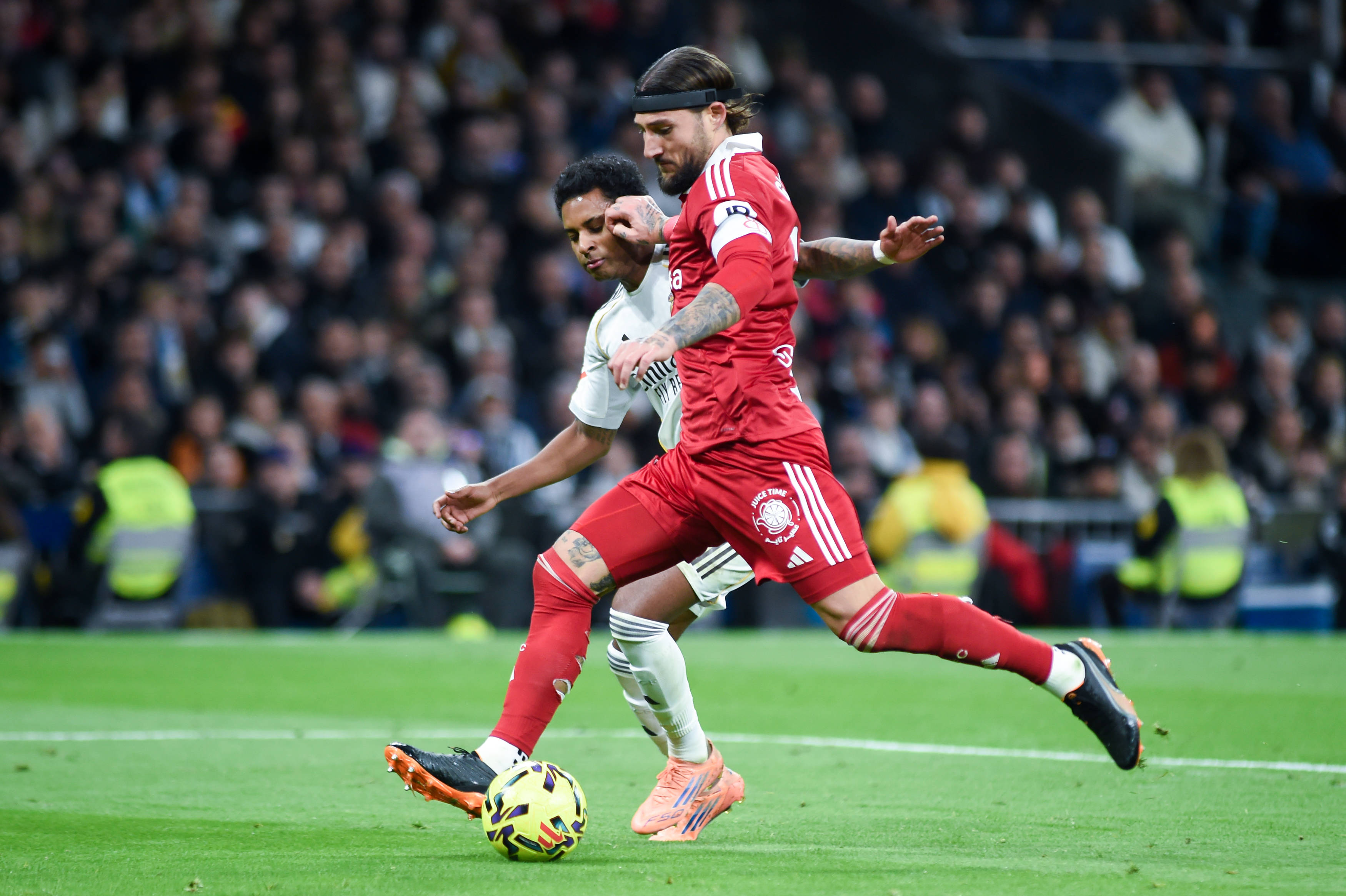 เมื่อวันที่ 20 ธันวาคม ไฮเซนของเรอัล มาดริด (ซ้าย) และฆวนลู ซานเชซของเซบีย่า แย่งชิงการครองบอลระหว่างการแข่งขัน สำนักข่าวซินหัว (ภาพโดย กุสตาโว บาร์เรียโตส)
